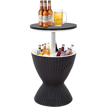 Casart 30l rattan effect ice bucket, height adjustable bar beer cooler table, outdoor coffee cocktail table round stool for garden, patio, party, deck and pool (brown) 5.0 out of 5 stars 3 £87.95 £ 87.